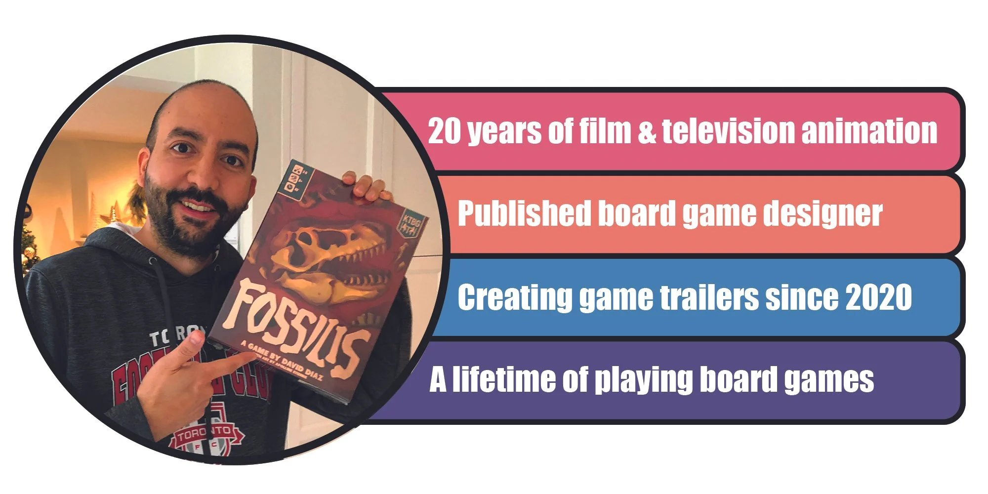 I am a published game designer. My game Fossilis funded on Kickstarter in 2018 with $232,463 CAD and 4,626 backers. Creating animated GIFS for the campaign is how Mesa Game Lab started.